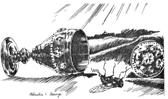 Strauji nolaidusies pie cilvēka galvas, muša iedīcās pie vienas un tad pie otras auss. Viņai patika šis sports, kad kāds cilvēks ar neveiklām kustībām mēģināja viņu nogalināt. Mušai vispār likās smieklīgi, ka šādi neveikli radījumi sevi dēvē par radības kroni. Šis cilvēks tomēr uz mušas dīkšanu nereaģēja. Muša brīnījās. Viņa palaidās gabaliņu tālāk, lai cilvēku varētu labāk apskatīt. Nekā sevišķa tur nebija. Palielais augums bija ietīts melnā samta apmetnī, ko uz labā pleca saturēja spoža sakta. Muša nepazina dārgakmeņus. Viņas cienība pret cilvēku tāpēc nemaz nepieauga, apskatot lielisko briljantu saktas centrā. Muša vēlreiz nodīca gar stāvētāja abām ausīm, atkal bez panākumiem. Sadūšojusies, viņa beidzot nometās uz cilvēka pieres, tomēr ne bridi nenolaizdama acis no cilvēka uz krūtīm sakrustotajām rokām. Jā, lūk, viena no šīm rokām sakustējās. Bet muša izbrīnījusies vēroja, ka šī kustība nebija strauja, kā viņa to bija pieradusi redzēt. Drošības labad viņa tomēr atstāja ieņemto vietu. Ar šo radījumu nebija ko iesākt. Pārāk liels un neveikls tas bija, lai varētu iznākt kāda cik necik interesanta spēlīte.