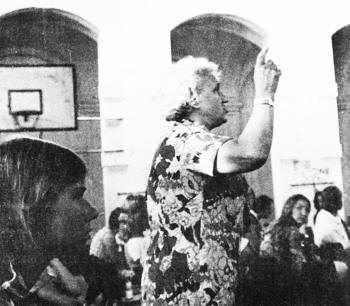 „Piesacīšanās pie vārda” A. Urdzes referāta laikā. Raksturīga šim kongresam bija vecās paaudzes līdzdalība. Foto: U. Grasis |