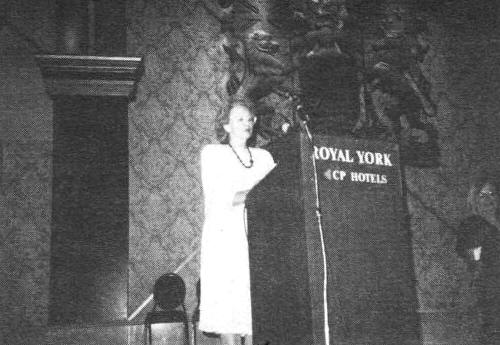 Indra Gubiņa dziesmu svētkos Toronto lasa savus darbus. V. Neimaņa foto. |