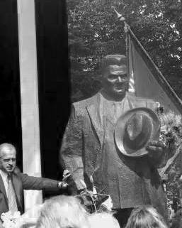 ![]() Kārļa Ulmaņa pieminekļa atklāšanā (2003) Raiņa bulvāra un Krišjāņa Valdemāra ielas krustojumā, Rīgā |