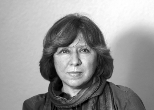 Nobelisti, baltkrievu rakstnieci / pētniecisko žurnālisti Svjatlanu Aļeksijeviču (Святлана Алексіевіч), kura raksta gan baltkrievu, gan arī krievu valodā, minējām sakarā ar viņai piešķirto vācu izdevniecību asociācijas Miera prēmiju (2013) Frankfurter Buchmesse ietvaros, citējot dažas rindkopas no viņas uzrunas (JG276:59-60): Ceļojot pa pēcpadomju reģioniem, par pieredzi pēdējos 20 gados, savās grāmatās dodu vārdu mazajiem cilvēkiem, kuri vēsturē ir kā smilšu graudiņi. Neviens viņiem nepiegriež vērības. Viņu čukstošais vai izkliegtais vārds pazūd vakuumā. Viņi vienkārši izgaist, nomirst ar visiem saviem noslēpumiem. Es eju pie viņiem un ieklausos. Iela man ir kā koris, kā simfonija. Aļeksijevičas darbu galvenais temats ir Krievijas traģēdijas pārstāsts sovjetu valsts laikā – no boļševiku revolūcijas, staļiniskajām eksekūcijām, Gulagiem un tolaik dienējušo zaldātu stāstiem par vācu sieviešu izvarošanu Berlīnē līdz pat Černobiļas katastrofai un Sarkanās impērijas sabrukumam. Rakstniecei raksturīgs ir pieraksts no Kabulas gadu pirms (1988) Gorbačova lēmuma pamest Afganistānu: Jauna afgāņu sieviete ar bērnu rokās. Pieeju pie viņas un sniedzu spēļu lācīti. Bērns to satver ar zobiem. Prasu, kādēļ bērns to tur zobos? Sieviete izritina bērnu no segas un es redzu tikai rumpi bez locekļiem. „Tas ir jūsu darbs,” viņa atteic. „Viņa nezin, par ko muld,” norūc netālu stāvošais Padomju armijas kapteinis, „Mēs taču atnesām viņiem komunismu…” Attiecībā uz mūsdienām, autore aizstāv ukraiņu nāciju, kas nevēlas tikt ierauta atpakaļ homo sovieticus jeb sarkanā cilvēka laikos, Krievijas atvarā. Latviešu valodā tulkota Aļeksijevičas Černobiļa: Lūgšana (2011) un Cinka zēni (2014).