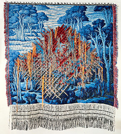 Kristīnas Austi (Lietuva/Norvēģija) darbs Hybrid II (2023) ir austs ainavas attēls starp atmiņu un iziršanu. Atgādinot tradicionālos vēsturiskos gobelēnus, tas izšķīst atvērtos pavedienos, atklājot trausluma un pārvērtības sajūtu. Daba pretojas ierobežojumiem, bet digitālie tīkli uzbrūk. Apvienojot ar roku austos un algoritmiskos procesus, darbs pēta spriedzi starp klātbūtni un zaudējumu, organisko un tehnoloģisko.