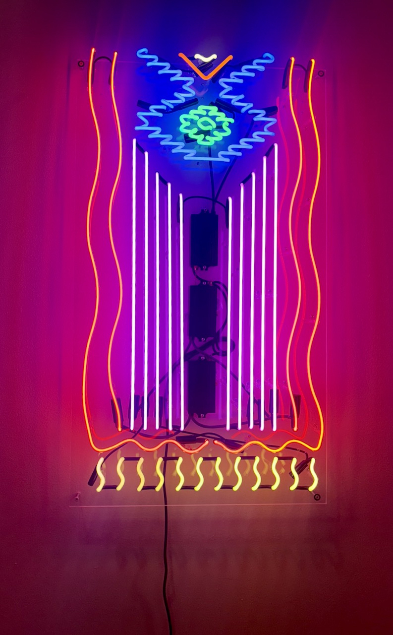 Līdzīgi Kavi (Ilze Briede) darbam, kurā tradicionālie simboli tiek pārinterpretēti, izmantojot jaunas tehnoloģijas, kurdu mākslinieka Roda Medhat piekārtais neona kilims Hanging Kilim II (2025) pārveido kurdu paklāja dizaina motīvus, izmantojot neofutūristiskas tehnoloģijas, saglabājot tekstilmateriāla maigumu, to vienlaikus pārvēršot gaismā, apvienojot iedomāto un reālo, kur tradīcijas un inovācijas saplūst. Tā kultūras relikvijas tiek pārveidotas gaismas formā.